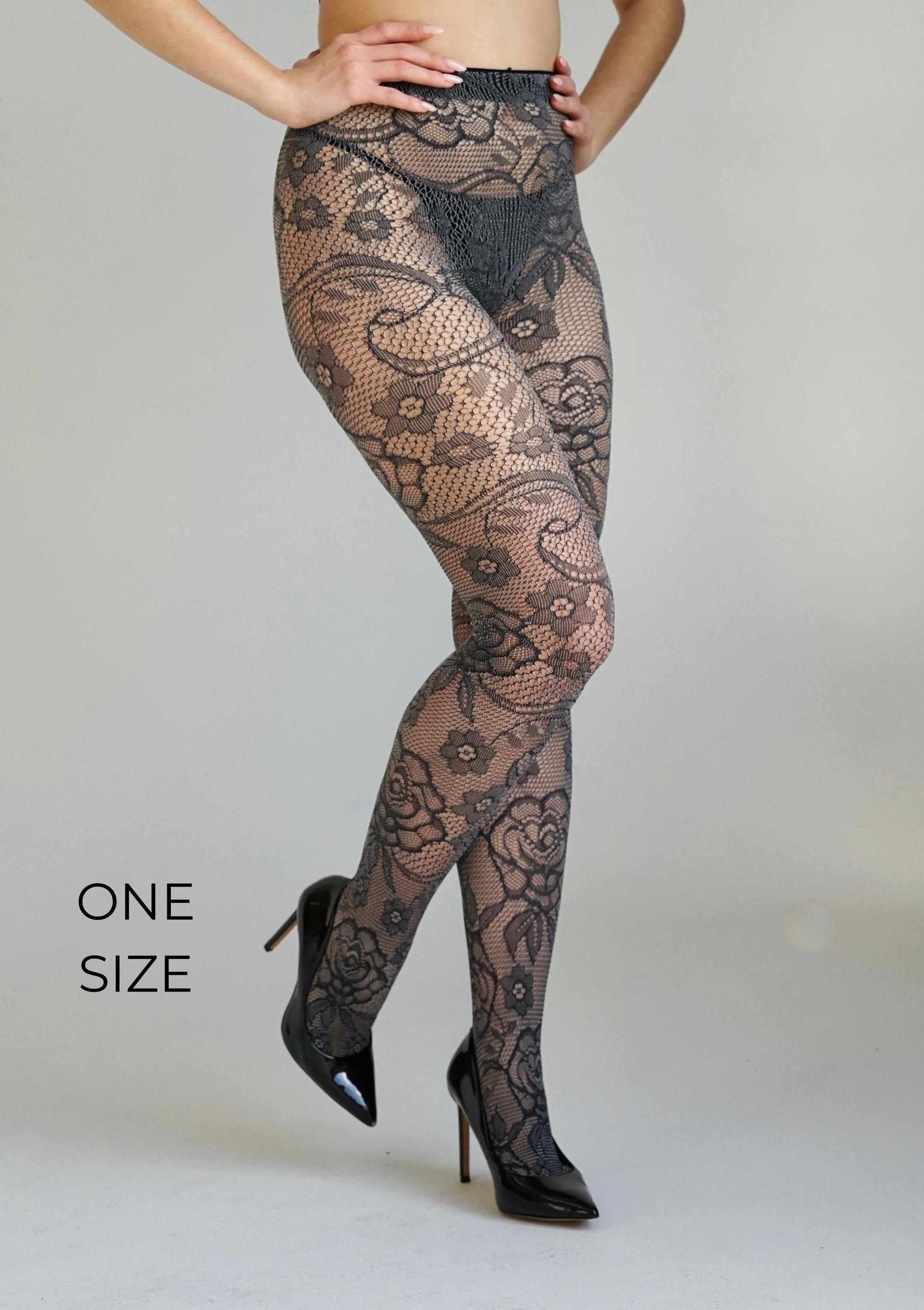 Elevate your outfit with these sheer dark grey floral fishnet tights — a perfect blend of edgy and elegant. Featuring an intricate rose-lace pattern woven into soft, stretchy mesh, they contour smoothly to your legs while adding a touch of texture and allure. Ideal for layering under skirts, dresses, or bodysuits for a bold, feminine statement.